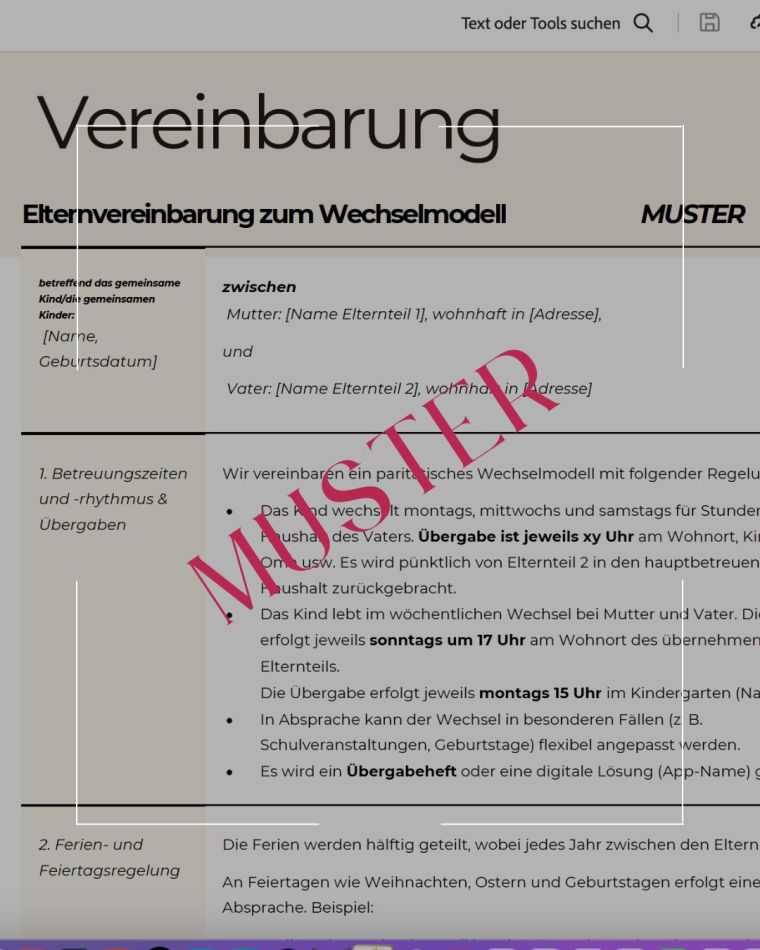 Muster für private Vereinbarungen zwischen den Eltern